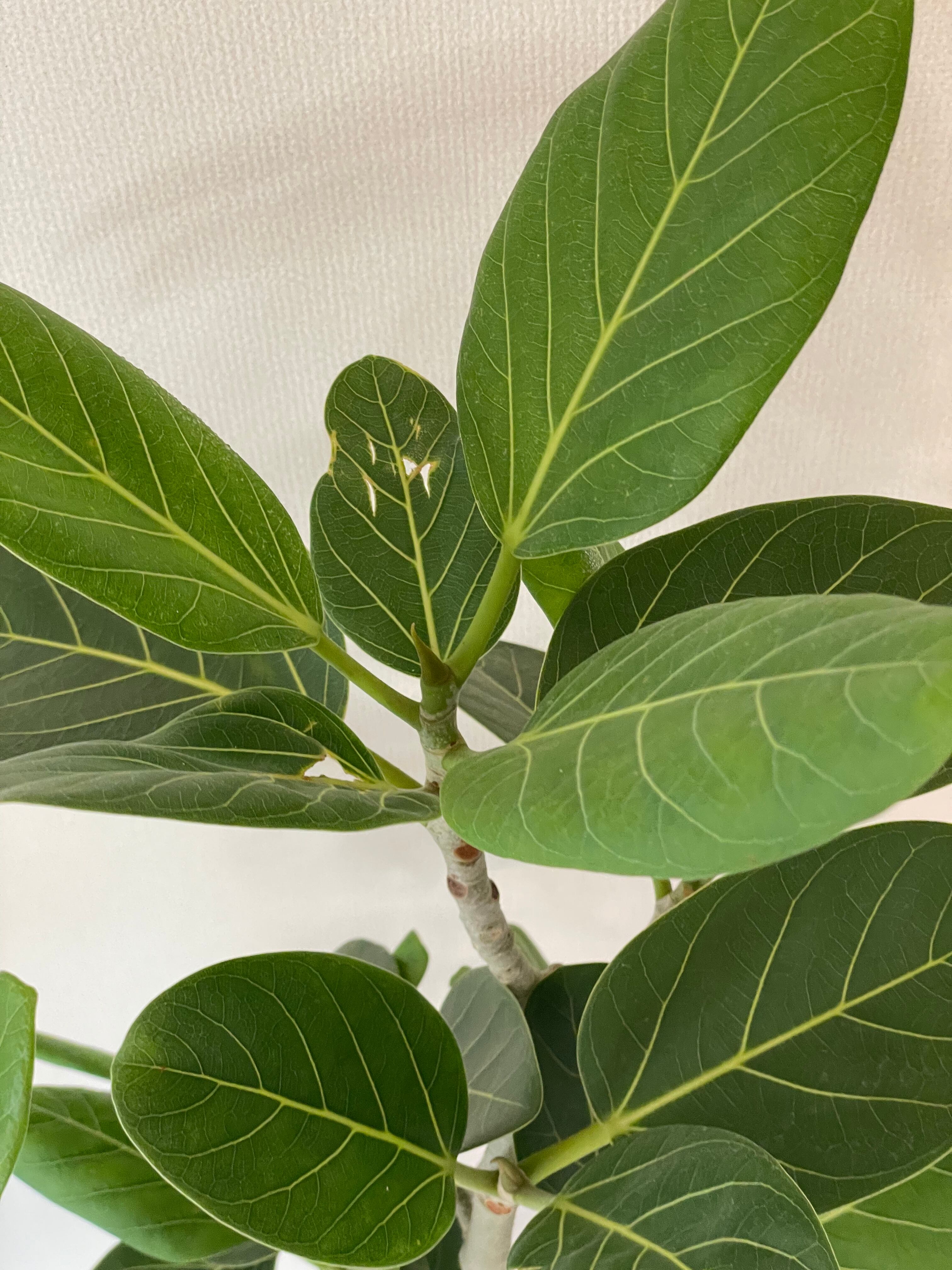 丸みを帯びたマットな質感で肉厚の葉、白い幹の美しさや個性的な幹のデザインから人気の観葉植物です。