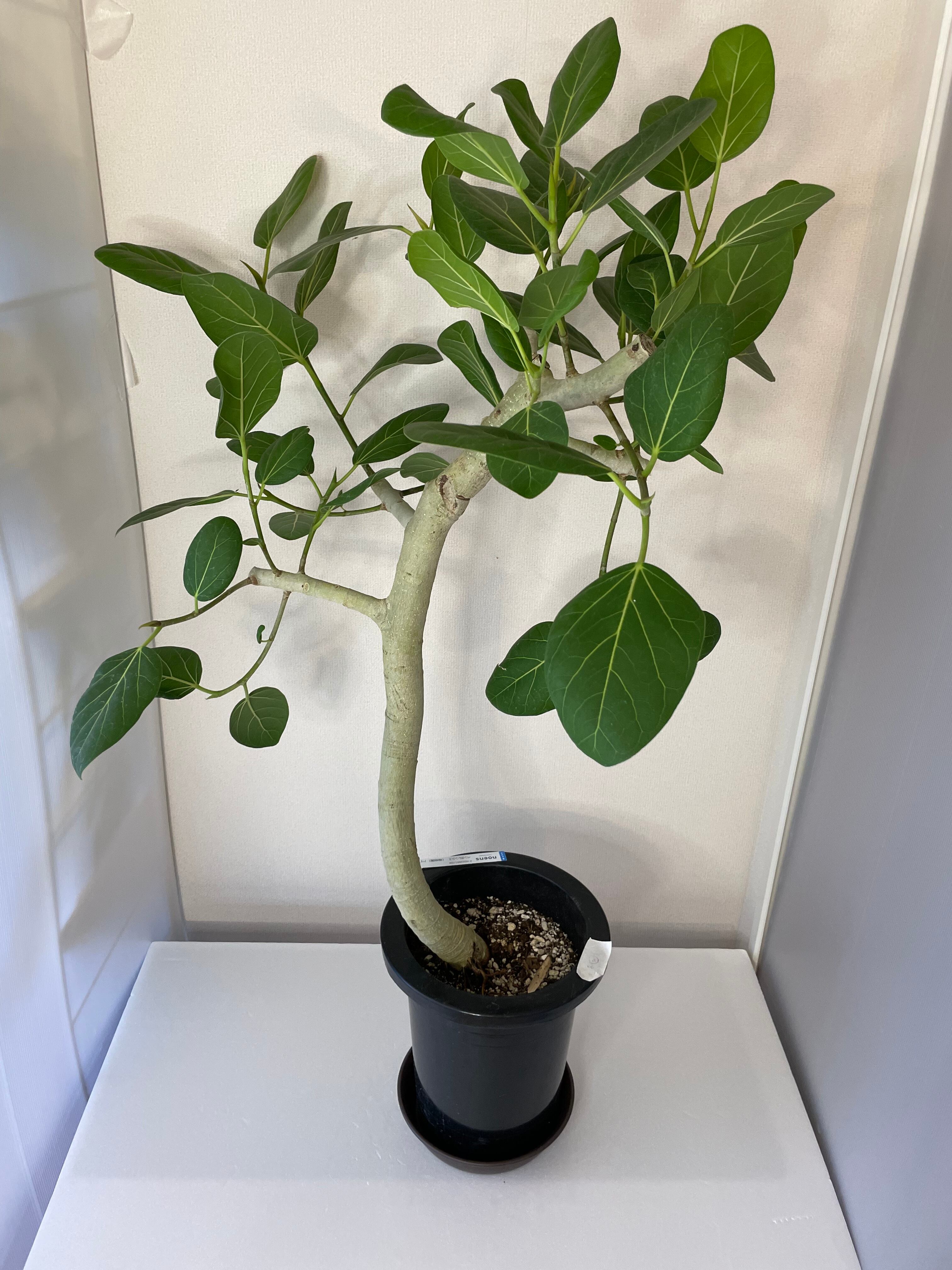 丸みを帯びたマットな質感で肉厚の葉、白い幹の美しさや個性的な幹のデザインから人気の観葉植物です。